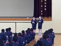 3年生の推進委員の紹介と前期の目標「文武両道」の発表がありました。
