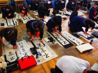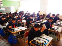 1月9日の始業式の後、各クラスで、新年の競書会を行いました。