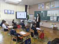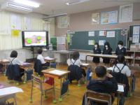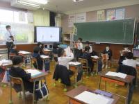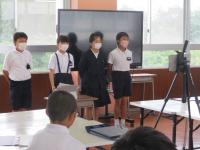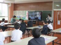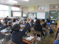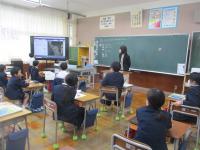 クラスごとに撮影した、授業始めの様子の映像を見合いっこしました。
