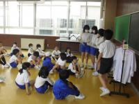 はじめに6年生がしてみせて「5年生は1時間で覚えてもらいます」と先生が言うと、