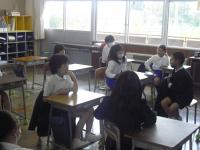 能登島小学校はほとんどの子がスクールバスを使って登下校するので、乗車ルールも含めて、班長になった6・5年生から説明を受けました。