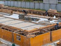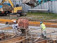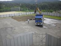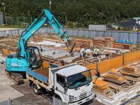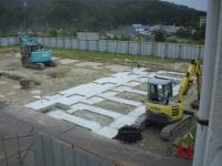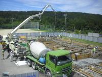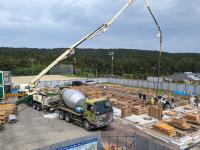 昼頃に長い手のついた車が入ってきて、ミキサー車から送られてきたコンクリートを流していました。