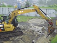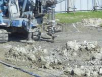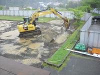 今日は朝から、プールができる場所のコンクリートを砕く作業が始まりました。