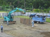 学校では、8時前からプール工事の人が見えられ、作業の準備をされていました。