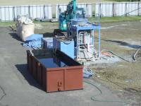 今日は、プールの周囲のコンクリートを砕いたところに、もう一度コンクリートをしきなおす作業をしていました。
