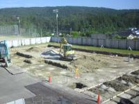 校舎と反対側の方では、排水管ができるのか、道路側に向かって穴が掘られ始めました。