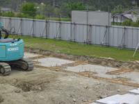 プール工事の方は、プールができるであろう場所の周りにプレートが並べられ、