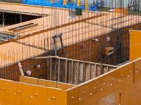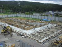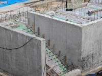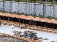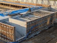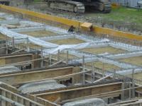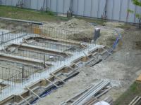プールにあたる部分と、周りのコンクリートとのすき間にあたる部分にコンクリートを入れているようでした。