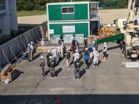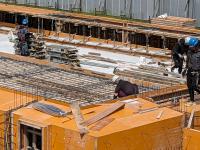 工事の方は、機械室などの屋根にあたる部分に、何人かの人が入られて作業をしています。