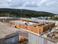 プールの工事も順調に進行中。更衣室でしょうか。細かく区切られた場所ができてきました。