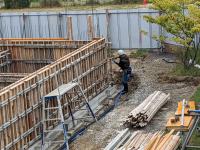 先週行ったコンクリが固まったようで、少しずつ木枠が外されていきます。