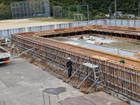 プールの工事は、コンクリートを流し込む工事が順調に進んでいます。