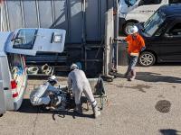 今日、学校はお休みですが、学校に来てみると朝早くから工事の人が来て、道具を準備していらっしゃいました。