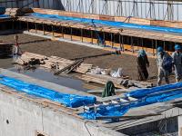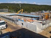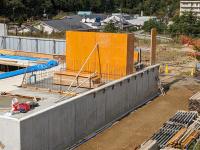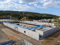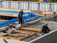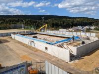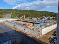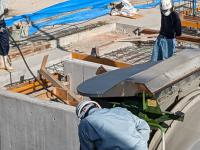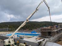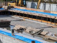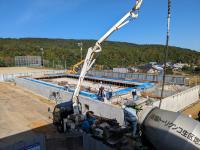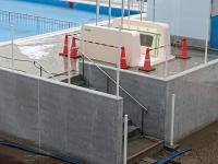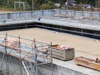 プールにあたる部分と、周りのコンクリートとのすき間にあたる部分にコンクリートを入れているようでした。