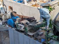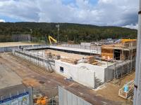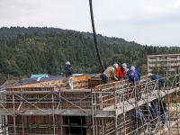 工事の方は、機械室などの屋根にあたる部分に、何人かの人が入られて作業をしています。