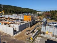 すっかり木枠が外されたプールはすっきりとした感じになり、今日の工事は機械室などの「お部屋」にあたるところが中心となるようです。