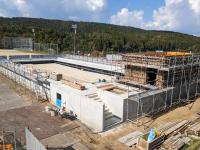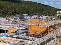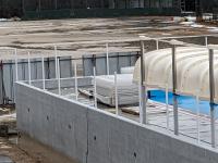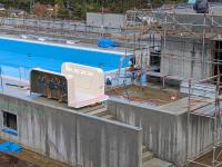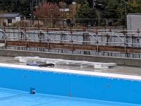 また、プールの周囲の部分も、足場が組まれ、ななめの棒が設置されました。これからどのように工事が進むのでしょう・・・?
