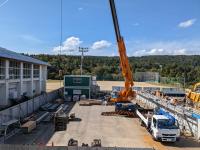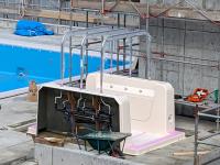 運び込まれていた「プールのユニット」は、昨日のうちにプールの側面にあたるところにきれいに設置されました。