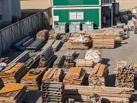 プール脇のスペースに、組まれていた枠が並べられています。すごい数です。1日で取り外されたとはびっくりです。