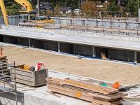 先週の工事を終わって、予想通り階段などにコンクリが入り、階段、シャワースペース、用具室の床の部分にコンクリートが敷かれました。