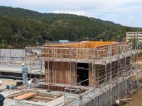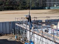 また、昨日から足場の範囲がさらに拡大しました。予想通り用具室になるであろうところにも足場が組まれ、いずれ木枠がはめられるものと思います。