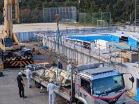 プールの工事の方は、水色の大きなものが運ばれてきました。プールの水が入るところの周りを囲む「ユニット」と呼ばれるものです。たくさん運び込まれ、今から組み立てていくと、「プール(の水が入るところ)」が完成するものと思われます。