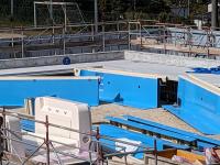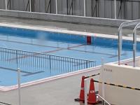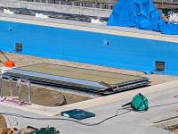 プールの底には、一面に水色のプレートが敷かれました。水をはったらすぐにでも泳げそうです。