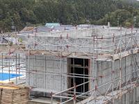 プール工事は昨日大きなクレーンで木の型枠が外れ、コンクリートうちっぱなしのプールがあらわれました。