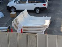 昨日から運びこまれだした「プールのユニット」ですが、ほぼプールの中に入ったようで、そこらじゅうに置かれています。今日はよく見ると、それぞれのユニットの壁にまるい穴がところどころあけられているのに気づきました。