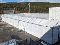 昨日からかけられはじめたグレー色のシートは、結局、プールの周囲全体にかけられました。