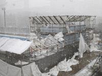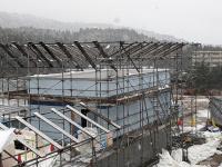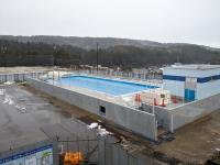途中吹雪の中、プール工事は続いているようでした。寒い中ありがとうございます。