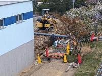 今日は、以前もしていた外のところをほって、パイプのようなものを設置する工事をしているようでした。