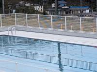 階段のところにも手すりがついて、プールサイドにあるのは、周りを囲むフェンスといったところでしょうか。