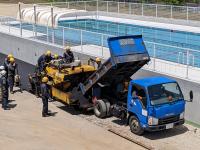 今日は、プールの周囲のコンクリートを砕いたところに、もう一度コンクリートをしきなおす作業をしていました。