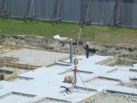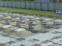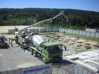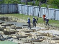 昼頃に長い手のついた車が入ってきて、ミキサー車から送られてきたコンクリートを流していました。