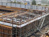 なので、今日はあまり作業する方もいらっしゃいませんが、見ると昨日から比べて大変多くの柱や板がいろんなところにはりめぐらされていました。