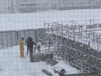 途中吹雪の中、プール工事は続いているようでした。寒い中ありがとうございます。