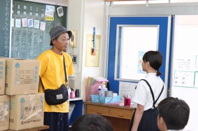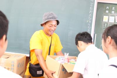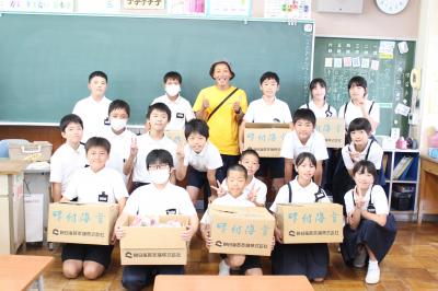 清水さんが来校され、6年生の児童に手渡されました。運営委員会を中心にお礼の言葉を言いました。