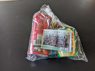 お菓子が入っている袋には、同町の川村小学校の子どもたちからの手書きのメッセージが添えられていました。本当にありがとうございました。