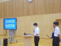 9月10日(水)後期生徒会役員・専門委員会委員長任命式を行いました。後期生徒会会長となった中西爽真さんから、「学年を問わず、仲良く協力できる学校」にしていきたいと抱負が述べられました。また、前期生徒会役員・専門委員会委員長、学級役員にも労いの意味を込めて温かい拍手が送られました。
