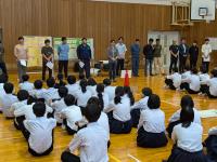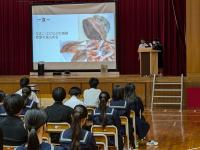 3月3日(月)の2年生の総合的な学習の時間に多田屋の若女将である多田弥生さんをお招きし、「令和6年能登半島地震で旅館や地域が学ぶべき事」と題して講演をしていただきました。震災の様子や震災後の対応、これからの復興に向けての課題について話され、大人だけがやるものではなく、子どもたちも加わってやっていくものとメッセージも頂きました。最後に生徒を代表して池野君が「復興に向けての地域の行事に積極的に参加し、能登の復興を他人事と思わないで協力していきたい」とお礼の言葉と決意を述べました。最後に、全国PTA連合会からの支援金を頂き、冷水機を購入したことが紹介されました。ありがとうございました。