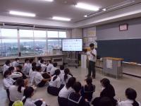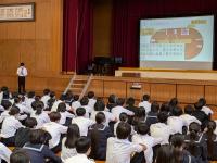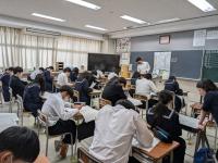 9月27日(金)の6限目に1年生を対象に薬物乱用防止教室があり、「薬物が人体に与える影響について」と題して、さはらファミリークリニックの佐原博之先生にお話をしていただきました。佐原先生からは「たばこをやめるのは難しいけれど…、吸い始めないのは簡単!」などのお話がありました。1年生を代表して山口さんが「薬物は身近なところにあり、いろんな害があると分かった。安全・安心な学校生活を送りたい。」とお礼の言葉を述べました。