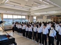 校長先生の式辞の中で、本校の校訓である「切磋琢磨」には学問や知識技術を磨き、仲間と競い合い、ともに成長するという願いが込められている。夢や目標に向かって努力を続け、一人一人が輝く存在になること、また、「3年間があっという間だった」、「もう一度能登香島中で学びたい」と思えるような学校生活を送ってほしいというお話がありました。