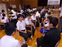 7月10日(水)に全校集会があり、『理想の授業実現に向けての1点突破』について1ヶ月間取り組んできた成果とこれからどう取り組んでいくかを各クラスの代表が発表しました。その後、各クラスの取り組みの様子を参考にし、一人ひとりが今後どのように取り組んでいくかを考え、意見交流をしました。