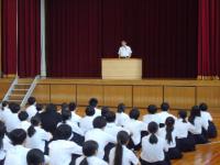 7月19日(金)に1学期終業式が行われました。校長先生からは、地震の影響でまだまだ大変な思いで生活をしている方もいる中で、学校は沢山の方の協力のおかげで1学期を終えることができたとということ、そして、1学期に「何ができるようになったか?」「何を考えられるようになったか?」をふり返り2学期につないでいってほしいということ、夏休みの時間を上手く使って自分を高めるように、身につけた自己指導能力を発揮してほしいとお話しになりました。