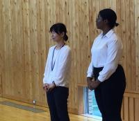 新しいALTの先生、特別支援教育地域サポートの先生の紹介式がありました。