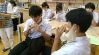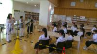 バックを制作した代表の方々が来校され、コカリナのミニ演奏会を行ってくださいました。