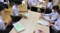 NPO法人日本コカリナ協会の方から、「奇跡の一本松」の布で作られたトートバッグが全校生徒に贈られました。