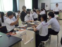 日本芸術院会員である神戸峰男先生と5人の先生方に彫塑の授業をしていただきました。粘土についての話、焼き物にする点での作品作りの注意を聞き、生徒は粘土を触りながら自分が何を作りたいかを決め、形にしていきました。