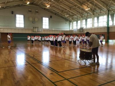 12日は赤団がグラウンドで練習、青団が体育館で練習しました。